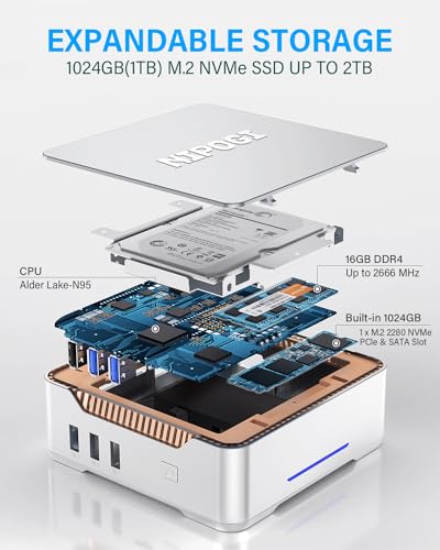 NiPoGi Mini PC Ιntel Alder Lake-Ν95 12th(up to 3.4GHz),16GB RAM 1TB M.2 SSD Mini Computer Gigabit Ethernet, mini pc Windows 11 4K Dual Display/2x HDMI/WiFi/BT Mini Desktop PC for Home/Business/School