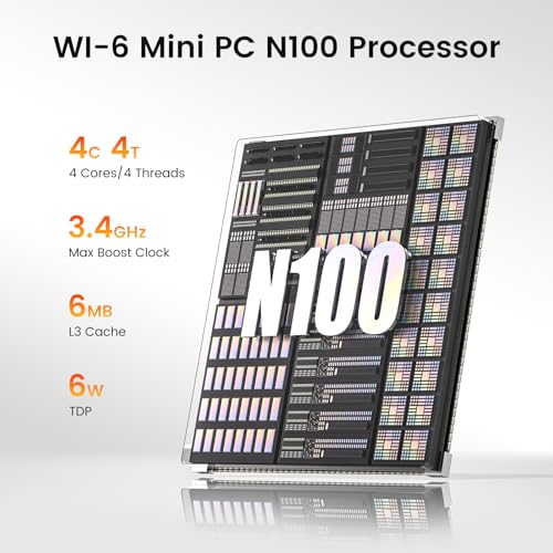 【Powerful 12th Gen Alder Lake-N100 CPU】—— Trycoo WI-6 Pro Mini PC is powered by the latest 12th Gen Alder Lake-N100 Processor (4C/4T, 6MB Cache, 3.4GHz , 6 W TDP) from 2023 and delivers more than 40% higher performance than N5105/N5095.